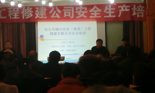 于2019年1月9上午8點,集團公司聯(lián)合工程修建公司進(jìn)行為期一天的安全培訓(xùn),特邀請包鋼集團公司生產(chǎn)部張鋼和康寶慶(注冊安全工程師 二級安全評價師)為各單位安全員進(jìn)行安全培訓(xùn)。